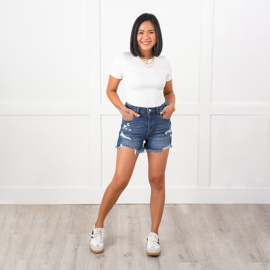 These Risen shorts are THE hot girl summer shorts you have been looking for. They are the perfect blend of comfort and style, with a hidden elastic waist to add to the fun!